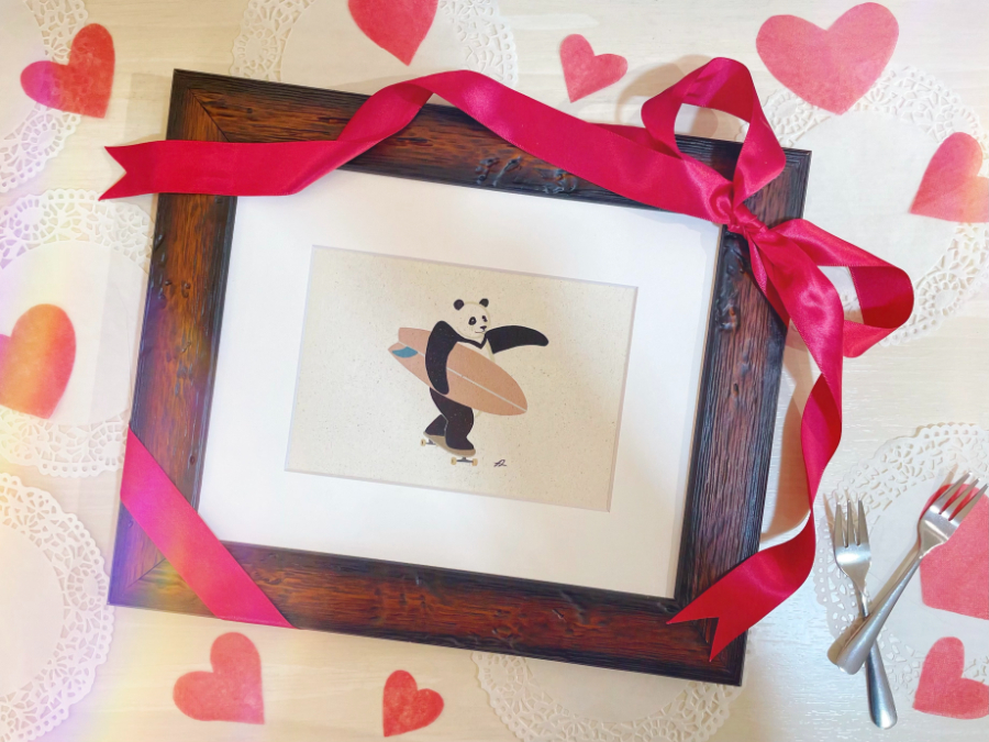また20㎝×25㎝の横長サイズですので、他のアートとあわせて飾ったり、テレビや棚の上といった場所にも飾りやすい作品でございます。