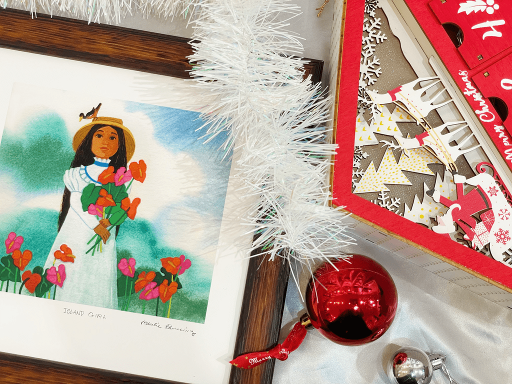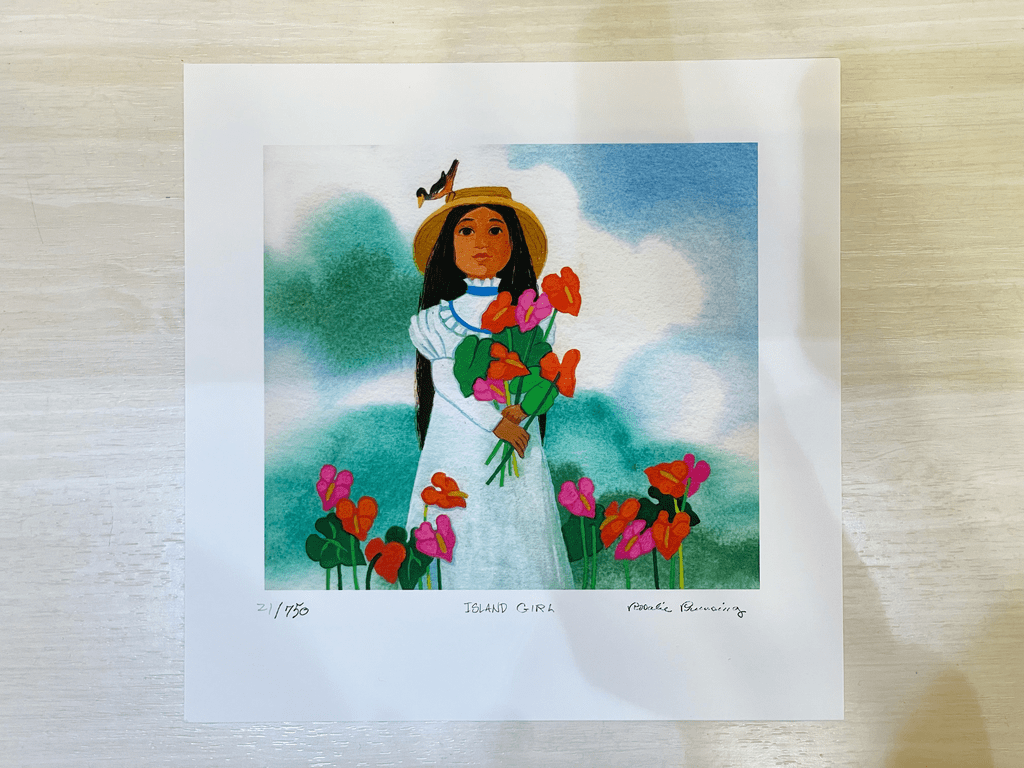そんな愛や幸せの象徴ともいえるお花や鳥が描かれた『Island Girl』。