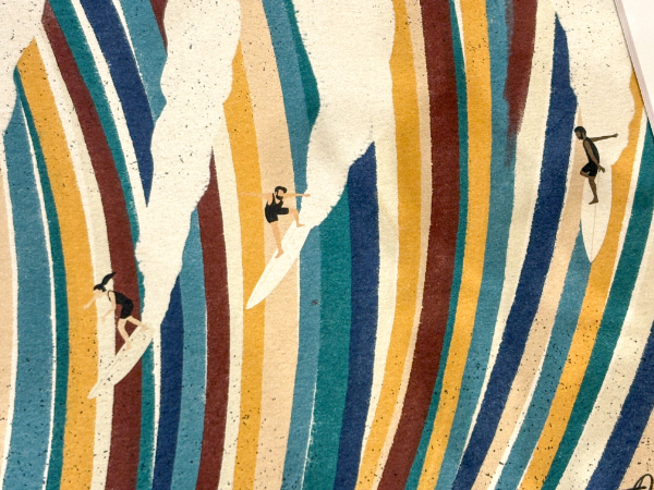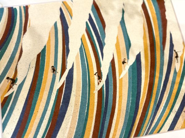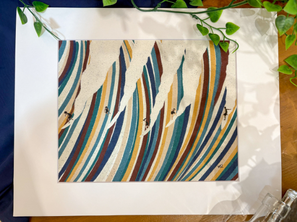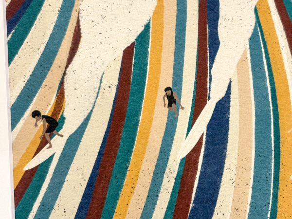 ダイナミックにサーフィンを楽しむサーファーたちが描かれたこちらのアート。